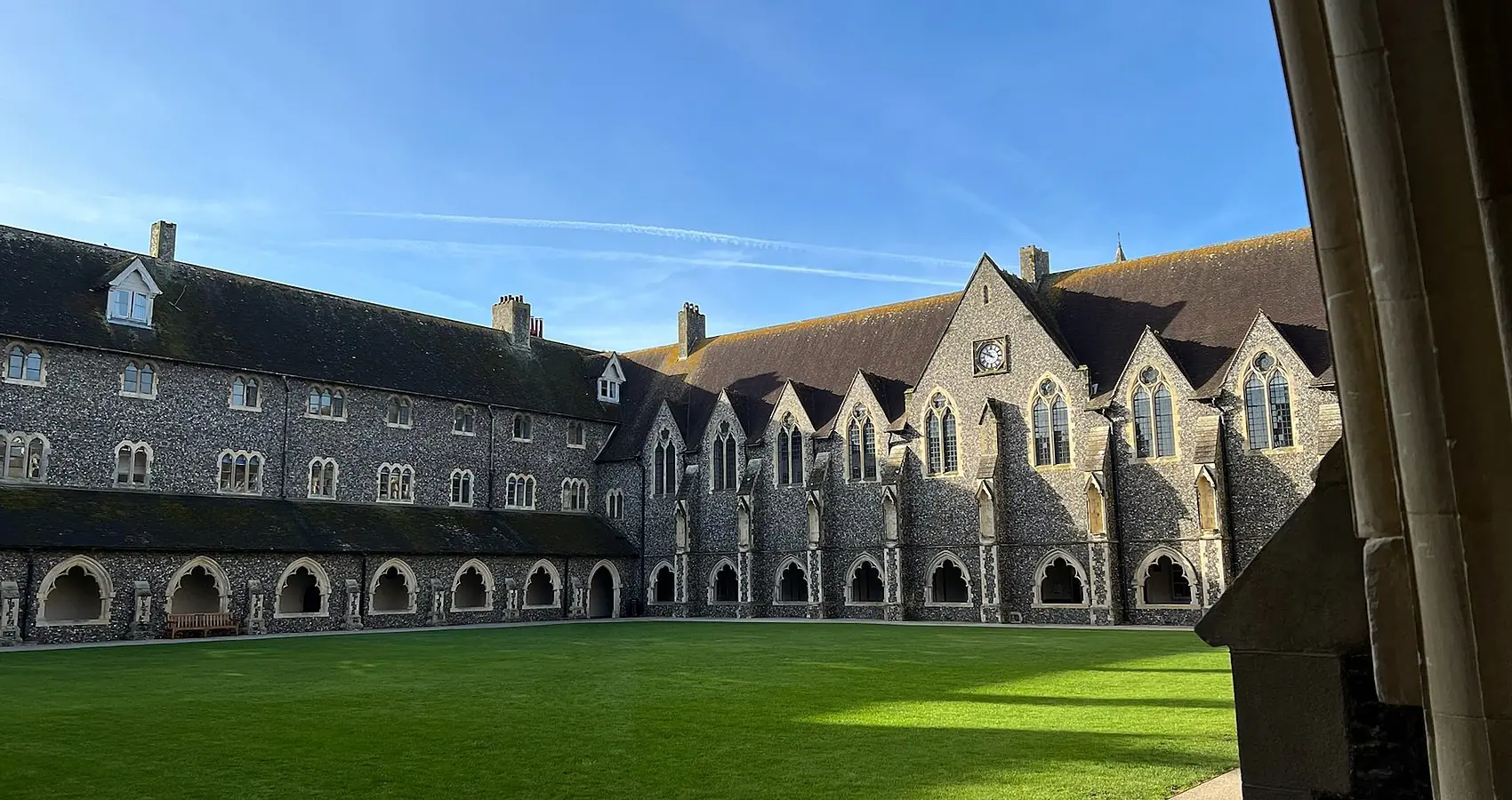 Lancing College sits atop a hill within the South Downs National Park, not far from the charming coastal village of Lancing.